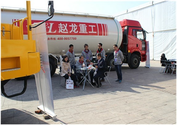 2013年11月19日,首屆中國(guó)義烏國(guó)際裝備制造業(yè)博覽會(huì)在義烏隆重開(kāi)幕,逐漸發(fā)展壯大的趙龍重工,以600平米的參展面積、6臺(tái)高品質(zhì)精品展車備受參展觀眾關(guān)注。本次參展車型有12方和16方混凝土攪拌車各1輛、粉粒物料運(yùn)輸車和半掛粉粒物料運(yùn)輸車各1輛、礦用自卸車2輛。展會(huì)期間,大氣的展車排布引來(lái)了許多參展人員前來(lái)觀賞,并贏得了廣泛的好評(píng)。